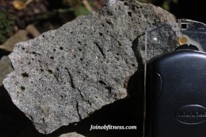 This zone of granitoid displayed significant fracturing with a trend of NNE/SSW. We came across another rock type (volcanic) that highlights vesicular texture. This was observed at The Falling Edge Waterfall.